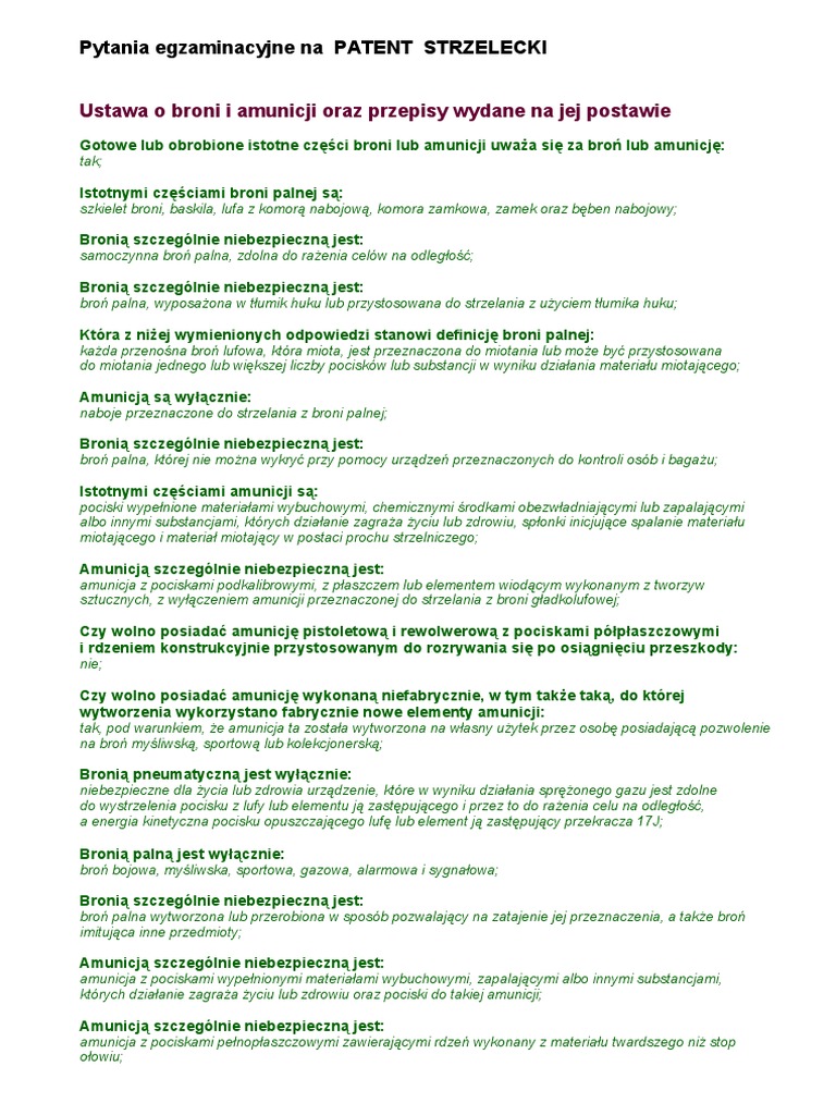 Pytania Egzaminacyjne Pozwolenie Na Bron