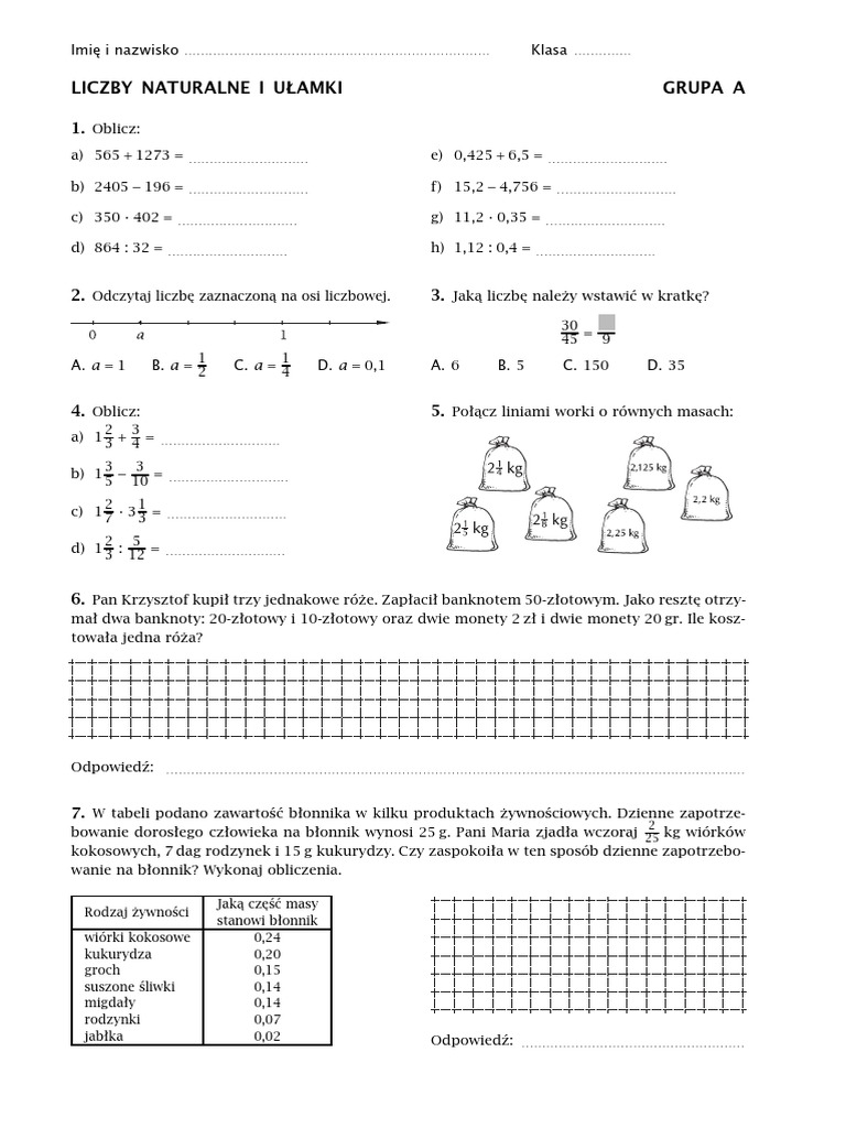 Liczby Naturalne I Ulamki Praca Klasowa Pdf